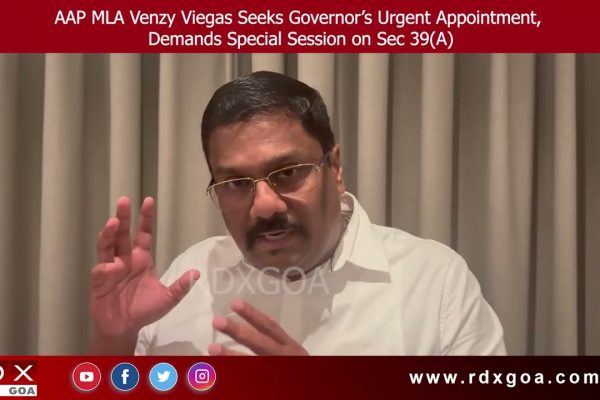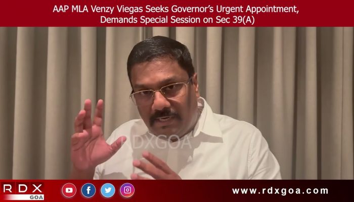 AAP MLA Venzy Viegas Seeks Governor’s Urgent Appointment, Demands Special Session on Sec 39(A)