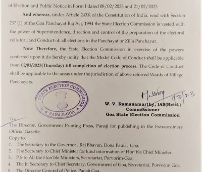 Read More1. The Bye Elections to Ward No. V of Village Panchayat Velguem, Ward No. VI of Village Panchayat Ona-Maulinguem Kudchirem, Ward No. VI of Village Pan