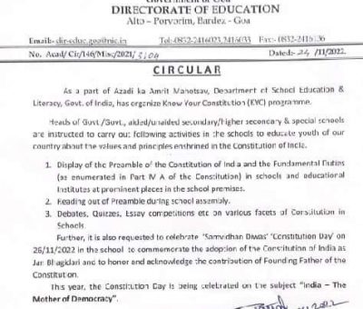 Read MoreDirectorate of Education has Organised Know Your Constitution programme. The Theme this year is "India - The Mother of Democracy"