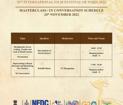 Read More#IFFI53 Day 5 Masterclass / In conversation schedule