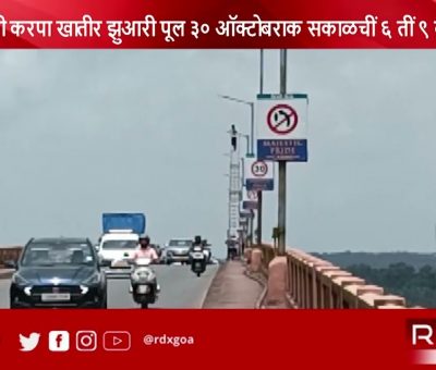 October 26, 20220 Zuari Bridge Will Remain Closed For Traffic On Sunday, October 30 https://youtu.be/xzWGimhJvpY Read More