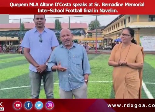 Quepem MLA Altone D’Costa speaks at Sr Bernadine Memorial Inter School Football final in Navelim