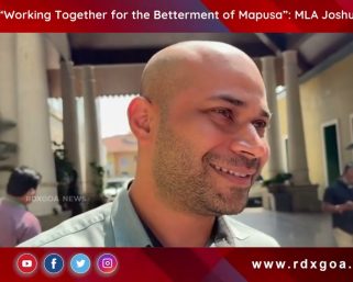 BREAKING NEWSFlash NewsNews “Working Together for the Betterment of Mapusa” – MLA Joshua February 11, 20260 Facebook Twitter WhatsApp Messenger Email Post navigation Previous Article WRD Project Not Under My Constituency, Says Subhash Phal Dessai Next Article Decision on Communidade Land for Ravindra Bhavan Likely After Meeting :Joshua D’Souza Related Articles Flash NewsNews December 5, 20230 Tara Kerkar Concern About Rising Rape Cases In Goa https://youtu.be/wLwK3xAy2FI?si=fKiTz0BCdkuXrpPw Read More Flash NewsNews December 27, 20230 Datta Jayanthi Celebration At Shree Shetra Pimpleshwar Datta Mandir https://youtu.be/VRL0QPvFwsI?si=Mj0S5_Bqs_1AwZOW Read More Flash NewsNews December 13, 20180 ANMOD RAMNAGAR HIGHWAY ROAD EXPANSION WORK BEGINS HARDSHIP FACED BY PUBLIC Read More